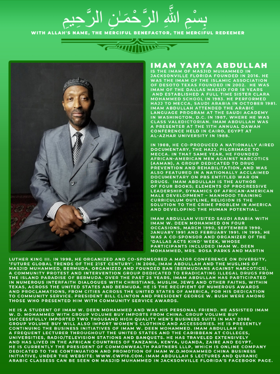 Al Islam Worldwide Ministry is an international religious organization committed to sharing Islam’s purest teachings, rooted in the Qur’an, the life of Prophet Muhammad (peace be upon him), and the profound insights of Imam W. Deen Mohammed. Since our founding in 2000, our ministry has grown from local roots in Jacksonville, Florida to a global platform. We aim to educate, uplift, and connect communities through authentic Islamic knowledge, spiritual development, and compassionate outreach efforts.
